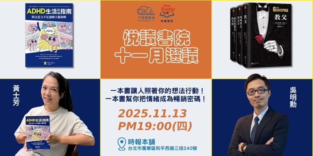 2025/11/13(四) CBC行雲讀書會【悅讀書院】十一月 | 《ADHD生活指南》+《教父》 實體分享會