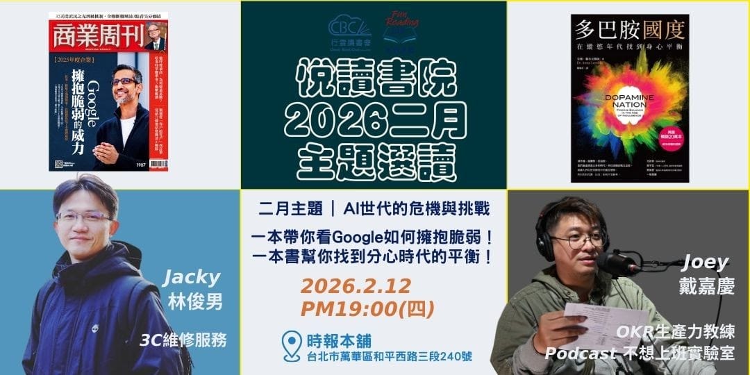 2026/2/12(四) CBC行雲讀書會【悅讀書院】二月《商業周刊主題「Google擁抱脆弱的威力」》+《多巴胺國度》實體分享會